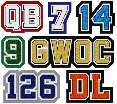Holloway offers the best quality chenille Numbers, Positions and Weight Classes.